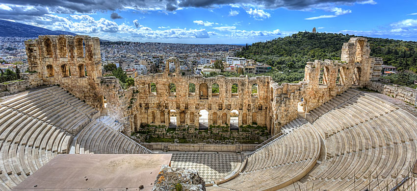 Built by Herod from 161 A.D. in memory of his wife, the semicircular amphitheater on the steps arranged in 32 rows can accommodate up to 6 thousand people. A wooden roof covered in ancient times the scene of the theater 35 meters wide.