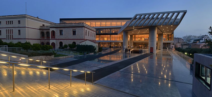 The Acropolis Museum is located about a kilometer away from the Parthenon, in the Makryianni district, among several archaeological sites including the ruins of the fifth century AD visible in the heart of the same structure through the glass floor of the second floor.