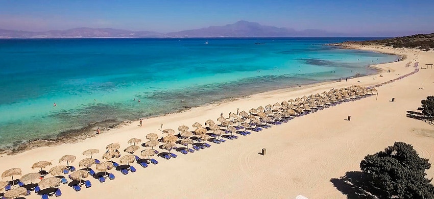 In the Libyan Sea in front of the southern coast of the island of Crete is the island of Chrissi famous for its tropical waters and its “golden beach”. This island is known for its golden colored beach which is the result of the natural crushing of countless shells that have mixed with the sand.