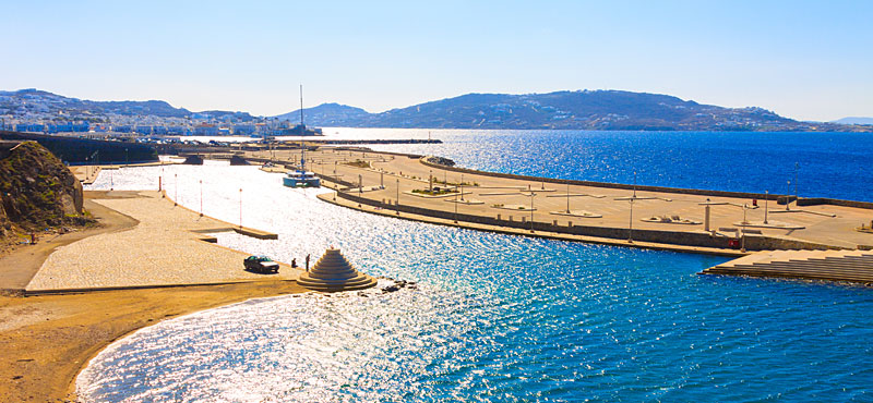 In Ornos beach there is a small harbor for fishing boats and an anchorage point for yachts.