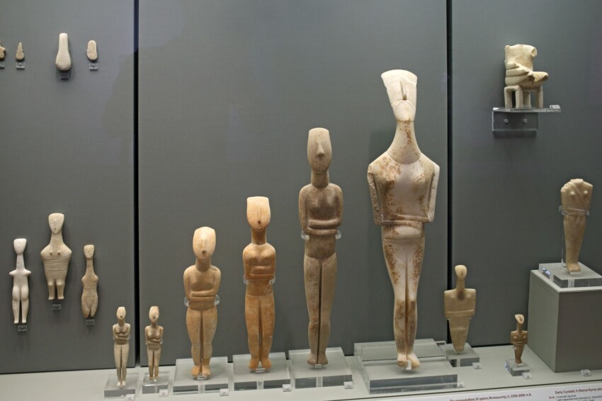 In addition to Cycladic art, the museum exhibits collections of Greek antiquities and Cypriot art illustrating the cultural evolution of the Aegean world. The Ancient Greek section includes ceramics, terracotta figurines and jewellery from the Bronze Age to the Hellenistic period.