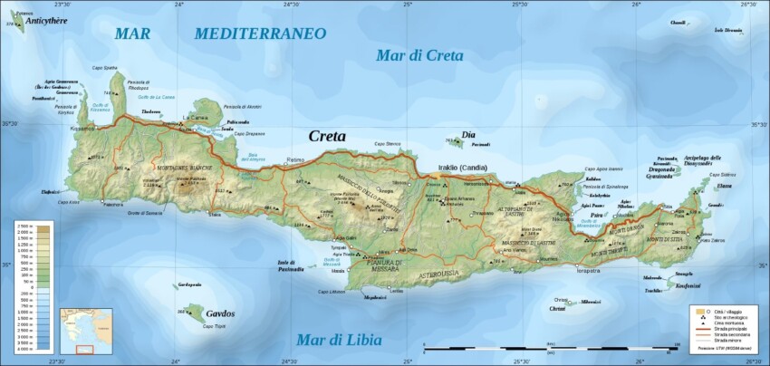 A must-have for every tourist, the map of Crete is very useful for planning your itinerary to discover the most beautiful beaches and must-see locations in Crete. Click on the thumbnail below to enlarge it and download and print it out.