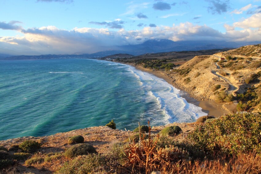 The southern part, closer to Matala, hosts a few essential facilities such as a couple of traditional taverns and a limited number of umbrellas. The sea is generally calm on windless days, but can become choppy when the mistral blows, attracting windsurfers in this case. A highlight is the archaeological site of Kommos, located just behind the beach, with the remains of an ancient Minoan port testifying to the historical importance of this area.