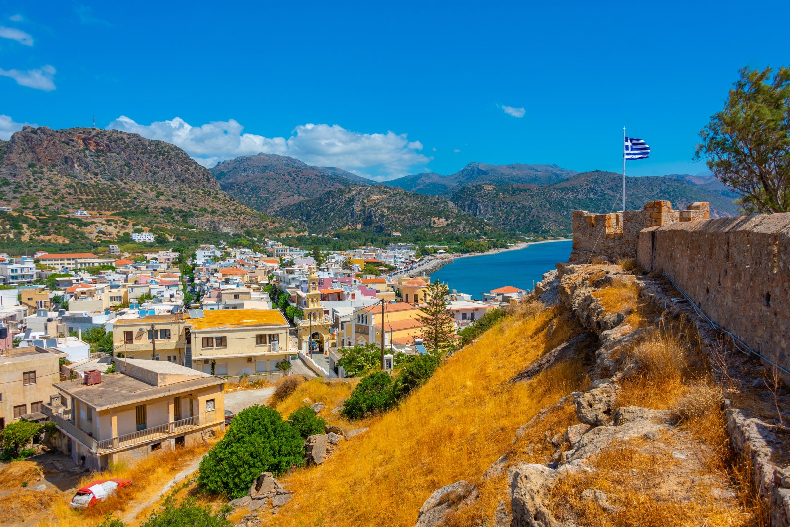 Paleochora boasts an enviable location that gives it some of the most beautiful beaches in southern Crete. The special peninsula shape ensures that, regardless of the wind, there is always a sheltered beach where one can enjoy the crystal clear sea, contributing to making this area one of the most popular beaches in Greece.