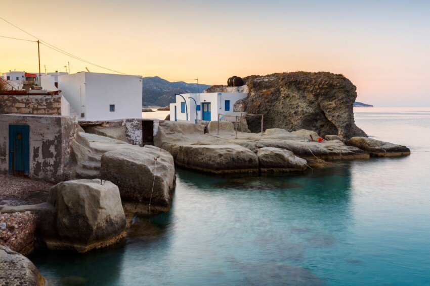 The island takes its name from the Greek word ‘kimolia’ meaning chalk, and this is no coincidence: its houses are indeed whiter than white, its landscapes dominated by snow-white rocks that contrast beautifully with the deep blue of the Aegean.