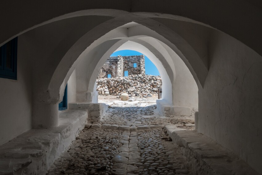 Despite this, the castle is still well preserved and is an impressive sight and a magnificent vantage point from which to view the Chora and the sea. Inside you can also visit the characteristic Panagia Kastriani church.