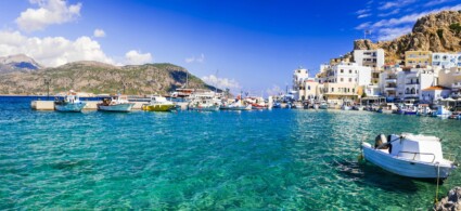 The beach of Diafani is easily reached by a pleasant, gentle 5-kilometre descent from the village. This seaside resort offers a pebble beach with diaphanous waters and is the starting point for boat excursions to the island of Saria and remote northern beaches such as Vananda and Papa Minas.