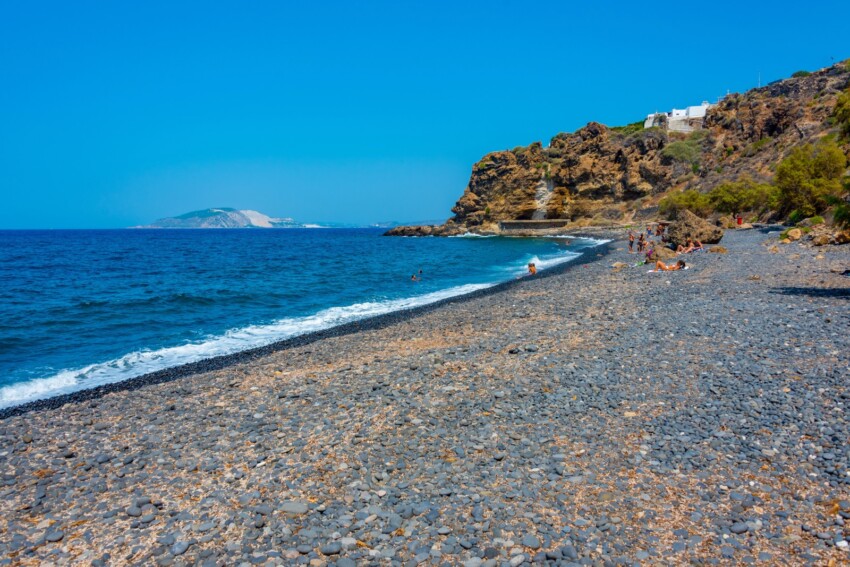 Lies spreads out as a long stretch of sand and dark pebbles along the southern coastline, reached by a scenic road that ends in a large dirt esplanade. This beach offers absolute tranquillity and clean waters, ideal for those seeking solitude and direct contact with volcanic nature. The path continues to Pachia Ammos, characterised by large dunes and a wild environment that requires a walk of about 15 minutes.