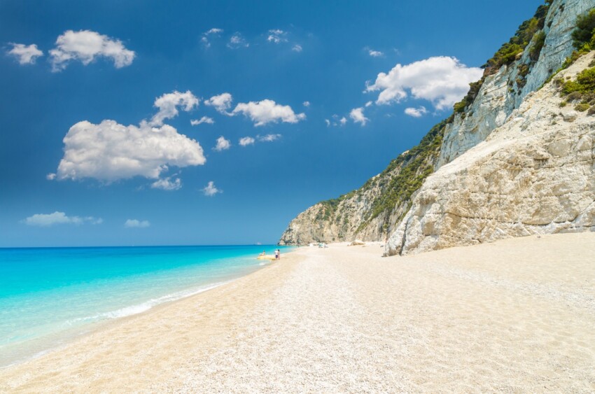 Egremni Beach is one of the most spectacular natural wonders of Lefkada and the entire Ionian Sea. Located on the south-western coast of the island, this magnificent stretch of sand and white pebbles stretches over 2.5 kilometres along a coastline of rare beauty. Its crystal-clear waters, ranging from deep turquoise to Caribbean blue, have made Egremni one of the most photographed landscapes in Greece.