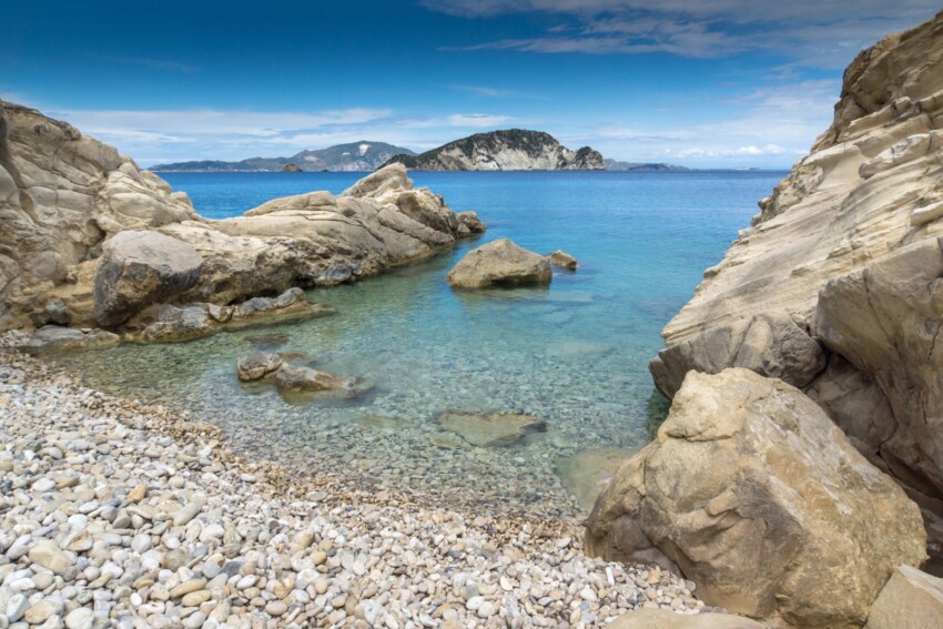 The beaches of the west coast of Zakynthos, unlike the eastern side characterised by many long and sandy shores and therefore ideal for families, are set among the high rocks.