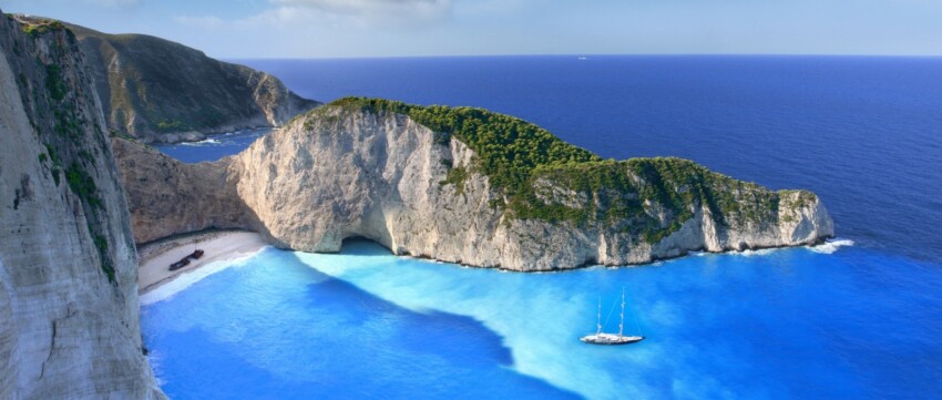The Shipwreck Beach is the undisputed icon of Zakynthos and one of the most photographed beaches in the world, set in a limestone bay of extraordinary beauty along the north-western coast of the island. The unique charm of this secluded beach derives from the presence of the wreck of the ship Panagiotis, beached on the white sand since 1980, which creates a spectacular contrast with the crystal-clear turquoise waters and sheer cliffs that surround it.