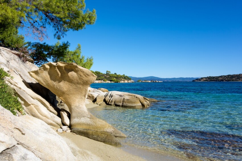 The central peninsula is characterised by pine-covered hills that slope gently down to the sea, creating picture-postcard scenery. Numerous hidden bays are only accessible by sea, making them perfect for those seeking privacy and tranquillity. The villages of Nikiti and Neos Marmaras retain their traditional character, with whitewashed houses, family-run tavernas and small picturesque harbours where fishermen shelter their nets in the shade of olive trees.