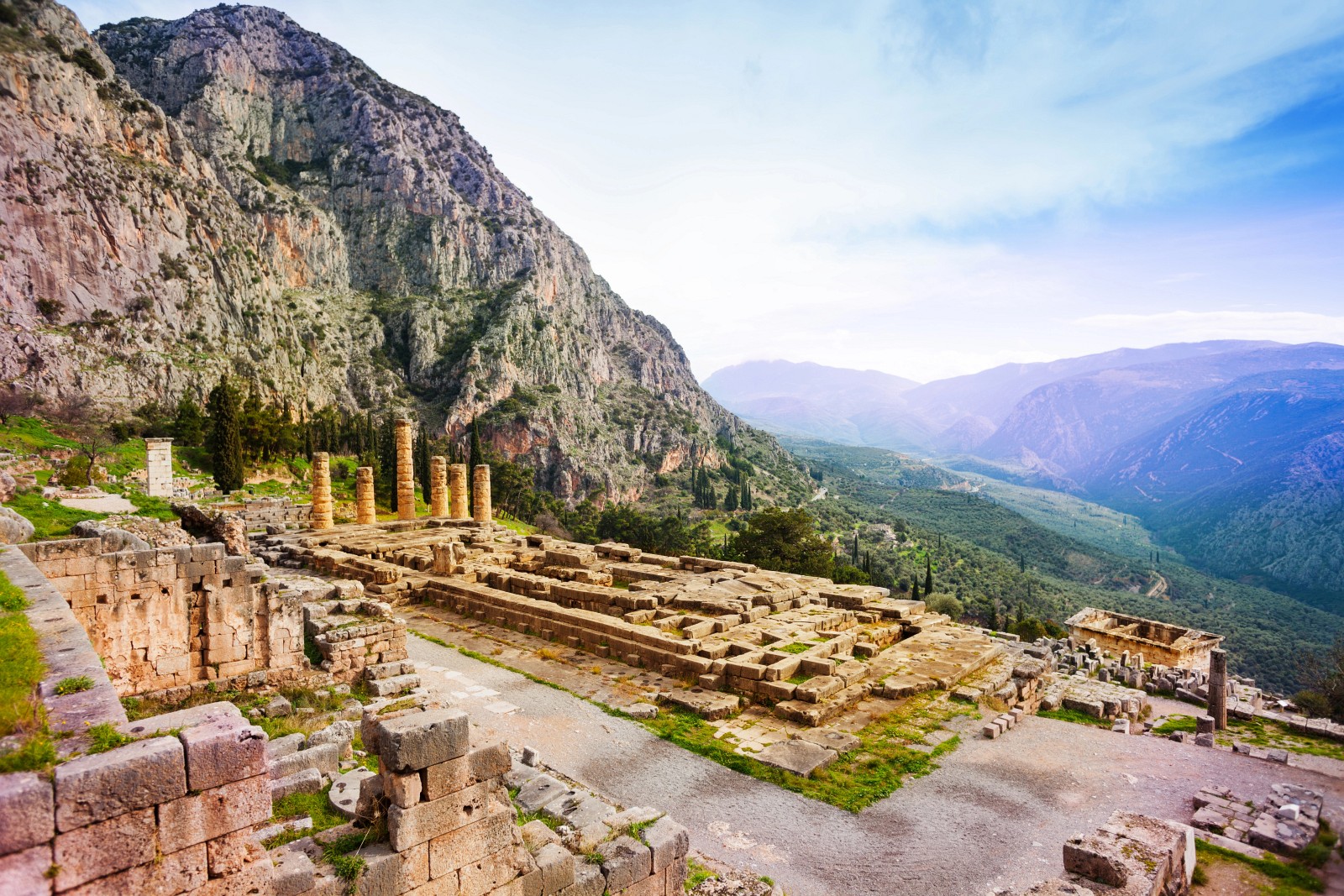 It is a complex of buildings, streets, statues and columns dominated by the Temple of Apollo, dating back to the 4th century BC, and also including a theatre and stadium (considered the best preserved in Greece). From the highest tiers of the theatre there is a splendid view of the ancient city and the mountains in which it lies.
