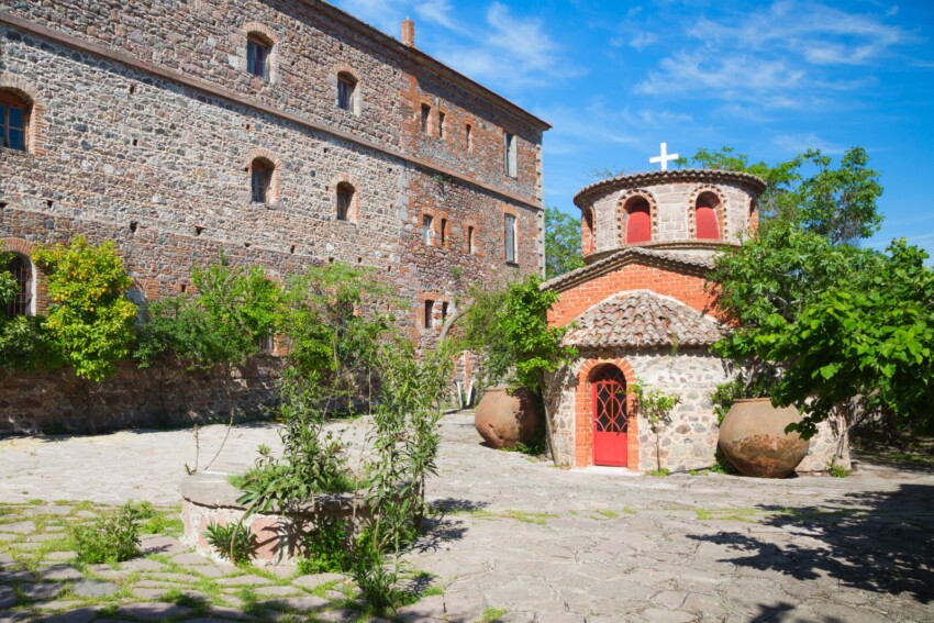 The petrified forests of Sigri, recognised by UNESCO as a World Geopark, preserve fossilised trunks from 20 million years ago in a unique moonscape, while the 16th century Limonos Monastery holds rare Byzantine manuscripts and offers breathtaking views of the west coast. Inland villages such as Agiassos maintain centuries-old craft traditions, famous for woodworking and the production of hand-painted Byzantine icons.