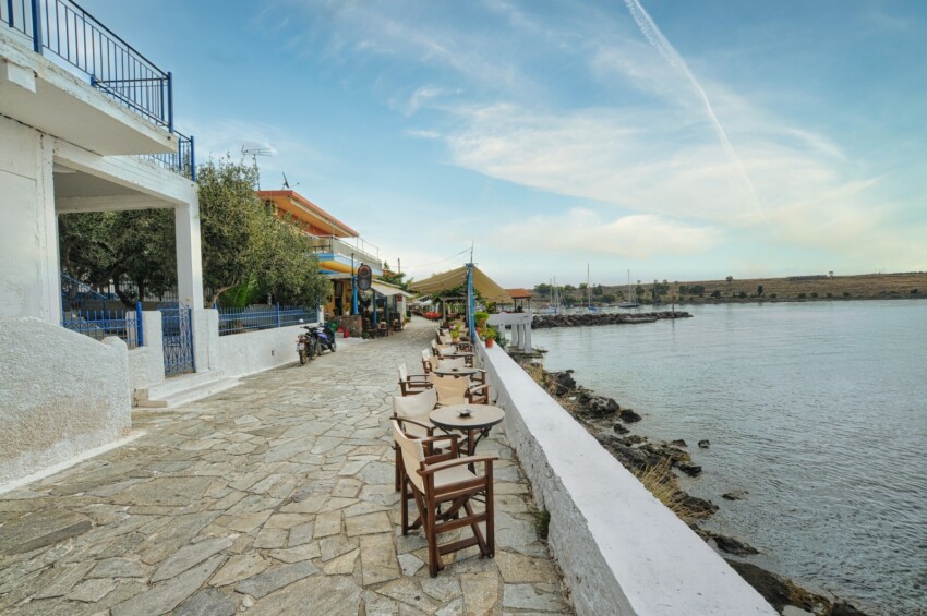 Souvala, on the northern coast, is known for its mineral-rich waters with therapeutic properties, which attract visitors in search of skin benefits. The beach is well organised and the village offers numerous restaurants and cafes.