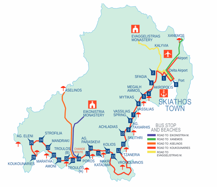 There are four summer bus routes on Skiathos: