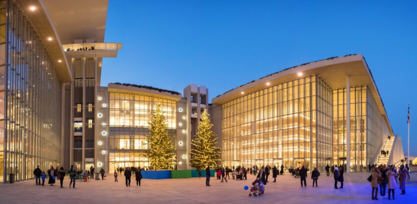 Le complexe accueille la Bibliothèque Nationale de Grèce et l’Opéra National Grec, mais inclut également des espaces d’exposition qui accueillent des expositions temporaires d’art contemporain, de photographie et de design. L’Agora, inspirée par l’ancien espace public athénien, fonctionne comme un point de rencontre culturel avec des installations artistiques permanentes.