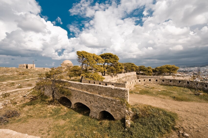 Dominant la ville du haut d’une colline s’élève la majestueuse Forteresse Vénitienne (Fortezza), construite au XVIe siècle pour protéger l’établissement des incursions ottomanes. Cet imposant exemple d’architecture militaire est aujourd’hui l’un des monuments les plus visités de Rethymno. Une promenade sur ses puissants remparts offre des panoramas vertigineux sur la ville et la mer Égée, tandis qu’à l’intérieur de la forteresse, vous pouvez visiter la mosquée d’Ibrahim Han (ancienne église de Saint-Nicolas), le bâtiment du Rectorat et les vestiges d’autres édifices historiques.