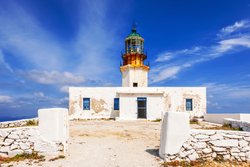 Le Phare d’Armenistis représente l’une des expériences les plus authentiques et panoramiques que Mykonos puisse offrir. Situé sur la côte nord de l’île, ce phare historique du XIXe siècle se dresse sur un promontoire rocheux qui offre des vues spectaculaires sur tout l’archipel des Cyclades septentrionales.
