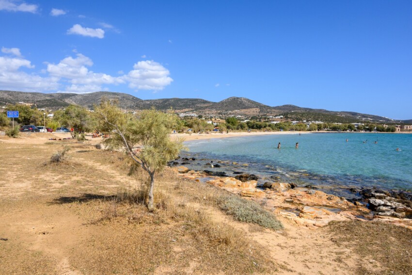 Les eaux venteuses rendent cette plage parfaite pour les sports nautiques, avec de nombreuses écoles certifiées offrant des cours et des locations de matériel. Le sable clair et les fonds graduels permettent aussi de se détendre loin de la musique, tandis que la vue sur Antiparos ajoute du charme au panorama. Le soir, les bars sur la plage se transforment en discothèques en plein air avec des atmosphères cosmopolites.