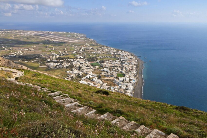 Kamari est l’une des stations balnéaires les plus organisées et dynamiques de Santorin, située sur la côte sud-est de l’île et réputée pour sa longue plage de sable noir volcanique et son excellente promenade piétonne. Séparée de Perissa par le massif rocheux imposant de Mesa Vouno, Kamari offre une expérience touristique complète et bien structurée, idéale pour ceux qui recherchent le confort, les services modernes et une vie sociale vibrante. Contrairement aux stations plus exclusives surplombant la caldeira de Santorin, Kamari conserve des tarifs plus accessibles tout en garantissant des standards élevés.