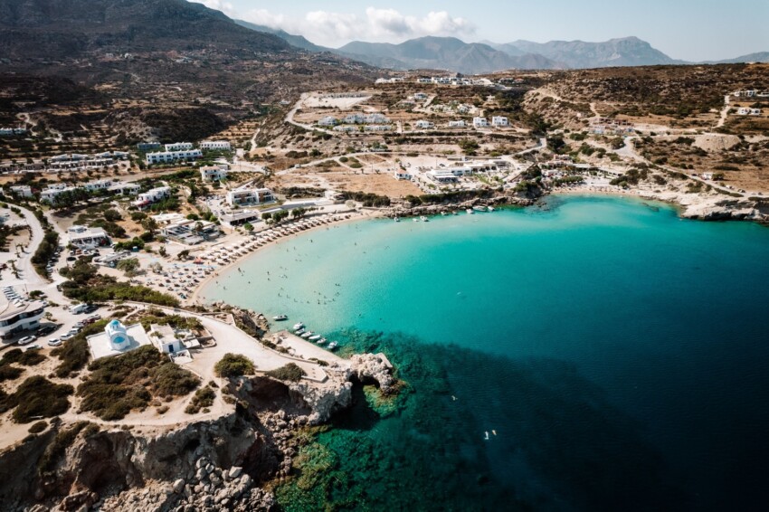 À une courte distance de Pigadia se trouvent certaines des plus belles plages de toute l’île de Karpathos, facilement accessibles en voiture ou en taxi-bateau qui partent quotidiennement du port. Amoopi, à seulement 5 kilomètres de la capitale, représente la destination balnéaire la plus appréciée des touristes, avec ses multiples petites criques de sable fin et de galets colorés protégées par des formations rocheuses qui créent des piscines naturelles d’une beauté rare. Les eaux turquoise et transparentes, les fonds riches en vie marine et la position abritée des vents font d’Amoopi l’idéal pour le snorkeling et pour ceux qui recherchent un environnement plus exclusif que la plage urbaine de Pigadia.