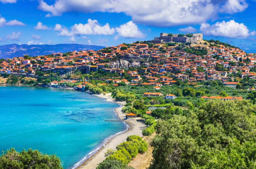 Molyvos (Mithymna) est considéré comme l’un des plus beaux villages de Grèce, construit en amphithéâtre sur les pentes d’une colline avec un château médiéval et une vue exceptionnelle sur la mer Égée. Mytilène, la capitale, est située sur la côte orientale face à la Turquie et construite entre sept collines verdoyantes qui descendent jusqu’au port naturel.