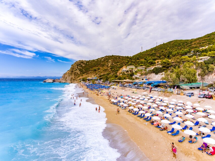 Pour les familles avec enfants : Les plages de la côte orientale comme Mikros Gialos, Sivota et Agios Nikitas offrent des eaux calmes et des fonds qui dégringolent en pente douce. Pefkoulia est idéale pour l’ombre naturelle des pins.