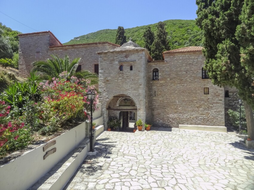 Un autre bâtiment religieux important est le Monastère de Panagia Iconistria8, à environ 2 km de la plage d’Aselinos. Pour les habitants de l’île, il a une profonde signification religieuse car c’est là qu’a vécu le moine Dionisio, une figure emblématique de l’église greco-orthodoxe, et parce que c’est ici qu’a été trouvée en 1650 une icône de la Vierge Marie qui est considérée comme « miraculeuse ».