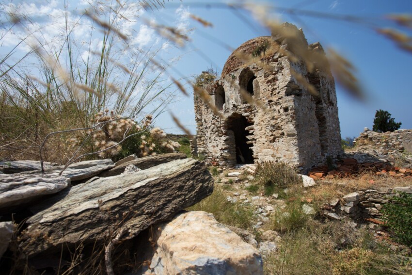 Autrefois l’un des bourgs les plus importants de l’île, avec plus de 300 maisons habitées et vingt églises, le Kastro n’est aujourd’hui qu’un tas de ruines comprenant les anciens murs, le pont-levis, le bain turc, quelques maisons et une église solitaire.