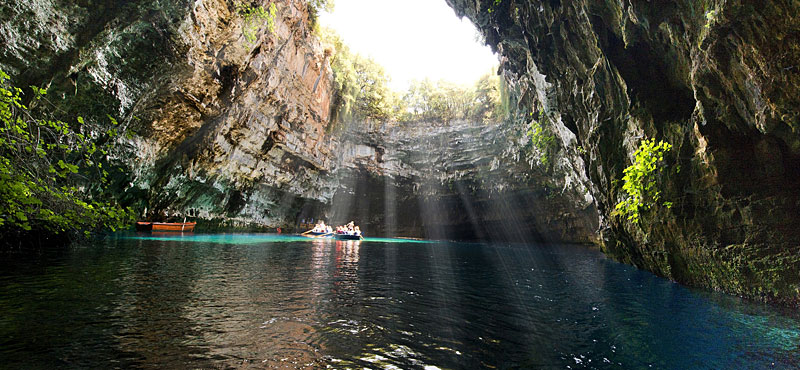 The cave of Melissani, or Melissani Lake, is the most visited: it is a karst cavity a few kilometers from Sami, which can be visited by rowing boat or on foot through a path that leads to the shores of the inner lake. A huge hole in the ceiling, caused by the earthquake of 1953, lets in the sun’s rays, which create an extraordinary play of light inside the cave.